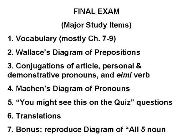 endings, paradigms, and declension of New Testament Greek. D. Homework: Each student will be required to complete